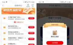 小编提示:打开中国工商银行APP搜索【任务中心】进去,在享活动那里点【庆中秋赢节礼】进去,完成4个简单的浏览任务可以抽奖5次,刚中2元,非必中