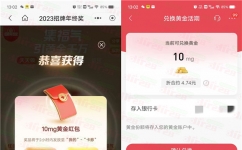 这个活动需要注册过招商银行二类卡的用户才可以参加(二类卡才可以兑换卖黄金红包),通过打开招商银行APP进去活动里,完成页面指定的多个任务可以得到福气值,有的任务完成后也可以得到黄金红包,完成拼图还可以有机会领到一个大额的黄金红包,另外集齐19个福气值、29个福气值、39个福气值还可以在1月5日-1月11日瓜分千万黄金红包,累积得到的黄金红包可以在招商银行APP里兑换卖出到二类电子卡,然后再从二类电子卡提现到你的银行卡就行,小编亲测累积得到的黄金红包卖出了9.81元现金。