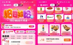 参加美团举办的18日抽88元活动,通过打开美团APP点顶部横幅或者搜索“神券节”进去,今天11点-23点每个整点可以抢满38减18元外卖券,下拉页面部分用户还可以直接领满38减18元、满25减10元外卖券,点“18日抽88元现金”进去集卡还可以抽1.8-88元红包(非必中)。