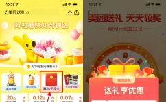 【活动内容】: 美团App用户每日进入“美团送礼”活动页,点击浮窗,即可获得3次抽奖机会。参与抽奖可随机获得不同金额的美团平台现金券。 用户通过抽奖活动获得的现金券奖品,在美团App美团送礼主会场及合作会场下单并使用美团支付-银行卡支付时可用,同一种类且同一面额的现金券,一天仅可使用一张,不可拆分找零,不支持提现、转让、出售,可在美团App【我的】-【红包卡券】内查看具体使用规则,现金券支付0.01元及以上时可使用,请在现金券领取后尽快使用,逾期将失效。