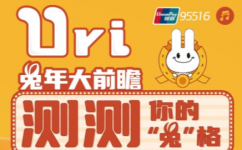 【活动内容】:免年大前瞻测测你的兔格,天真可爱、充满活力拥有收集一切热衷于帮助他人,新奇活动的探索能力绝对的责任担当!没错,在免世界中,它绝对是大家爱不释手的"拿中宝”"中国这只可爱的U免兔年将至银联智能客服Uri又来送福啦!当免世界"明星"邂逅了你,注定们会开启一场让彼此印象深刻的奇妙之旅~想知道你是什么免格吗?想知道哪种U免会被你吸引吗?快跟随Uri的脚步来一场#Uri免年大前瞻。截止至2023年1月28日,每位用户参与互动有机会获得抽奖机会,每天仅限参与5次互动。 活动奖品:500元京东购物卡(5份)、200元京东购物卡(10份)、100元京东购物卡(10份)、50元云闪付红包(100份)、30元云闪付红包(300份)