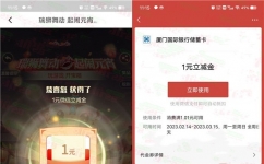 小编提示详细流程: 1、打开厦门国际银行APP,在【我的】页面点【活动中心】进去下拉页面找到【拆兔兔礼盒】、和【瑞狮舞动起闹元宵】进去,这2个活动都可以去; 2、2个活动都是每天有1次免费游戏机会,第1个活动累积180个幸福币兑换3元微信立减金,第2个活动小游戏达到50分抽1-3元微信立减金。