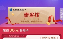 1、打开支付宝APP搜索【建行省钱卡】进去活动里;