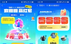 小编提示:打开支付宝APP扫码进去,在11月11日前,套圈小游戏中只要累积分数排面在前100万名以内都会必得花呗红包,最低1.11元,最高4999元