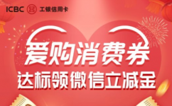 【活动内容】: 活动期间,工银信用卡持卡人每月通过“e生活Plus”微信小程序进入“爱购消费券”活动页面参与“达标专享”消费笔数达标领取爱购消费券活动。持卡人使用工银信用卡当月单笔达标消费笔数2笔,有机会领取一张满10元立减3元通用微信立减金;当月单笔达标消费笔数累计消费5笔,有机会领取一张茶饮类满20元立减5元场景消费券;当月单笔达标消费笔数累计消费8笔,有机会领取一张商超类满30元立减10元场景消费券。每位持卡人每种场景消费券限领取一张,每月最多领取共计18元爱购消费券。名额有限,先到先得。 领券时间:最晚需在2022年3月6日23:59:59前领取
