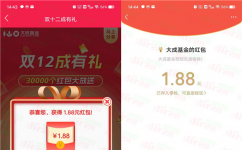 大成基金的活动又来了,建议老用户参加,大成基金经常会有类似的活动,虽然并非必中,但是概率还是可以的,通过下载打开大成基金APP,登录后点击弹窗进去活动里可以直接抽奖1次,有机会抽到一个1.08-188元随机不等的红包,抽到红包之后再去微信公众号领取就会推送。