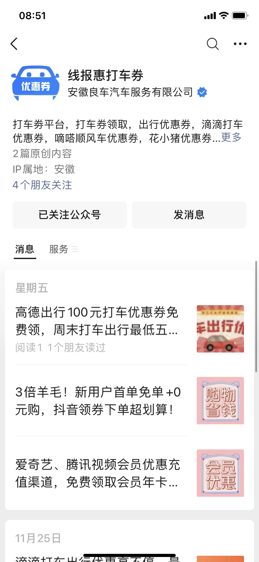 如果大家不想通过这些方法来获得打车券的话,不妨点击微信关注公众号【线报惠打车券】平台,也能领取到相应的打车优惠券!