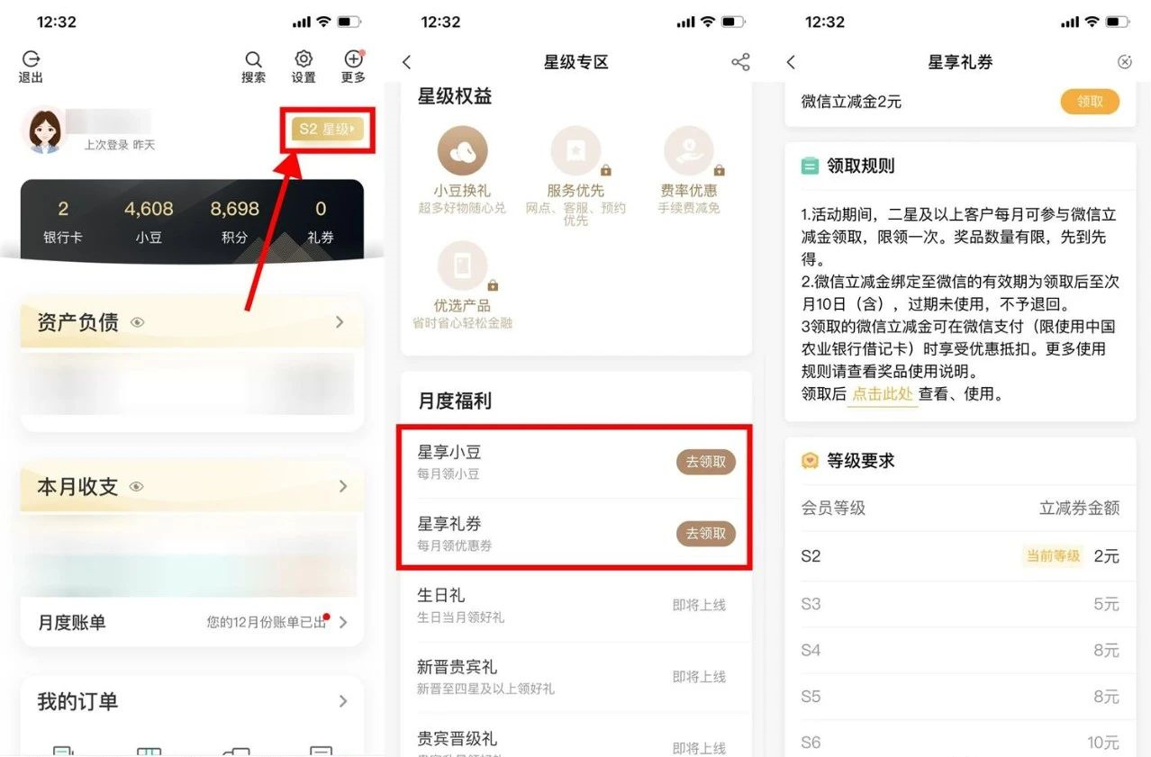 活动一:农行星级用户领取2~20元立减金