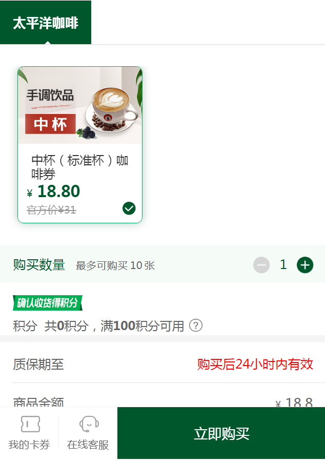 近年来,咖啡品牌如雨后春笋般涌现,与此同时消费者对咖啡的品质、口味、体验等要求也水涨船高,如何面对日新月异的市场?如何满足消费者日渐严苛的需求?今年迎来第三十岁生日的太平洋咖啡交出了自己的答卷。一杯好咖啡,一个好环境,一次好服务,源于中国香港的太平洋咖啡与消费者们共同成就着彼此的 " 梦想 ",在三十岁来临之际,太平洋咖啡还为大家准备了大量优惠券哦,一起看看它的领取方法! 太平洋咖啡的咖啡豆来自世界各地的产区,经过精心挑选和烘焙,保证了咖啡的品质和口感。其次,太平洋咖啡提供广泛的咖啡饮品选择,如浓缩咖啡、拿铁、卡布奇诺等,以及各种口味和配料的调制方式,使得顾客可以根据个人口味喜好选择自己的咖啡饮品。除了产品品质,太平洋咖啡在服务质量方面也做到了极致。从点单到制作和交付,每一个环节都有专业的员工进行操作和监督。 为了增加自己的客流量,太平洋咖啡在近期为大家准备了大量咖啡代金券,只需要微信关注公众号【奶茶咖啡优惠券】就可以领取。里面官方价31元的太平洋中杯(标准杯)咖啡券只要18.8元就能购买,本权益可免费兑换标准杯手调饮品一杯(手冲咖啡、冰滴咖啡、冷萃咖啡、酒咖啡、气爽咖啡、虹吸咖啡及太茶除外);改用咖豆需另加3元,兑换燕麦饮需支付4元差价。需要注意的是,卡券不支持外卖点餐、手机点餐,需到店出示券由门店扫描验证即可使用。太平洋全国直营门店可用(加盟店,汽车站,火车站,机场等交通枢纽和景区门店除外)。 另外,大家还可以点击【更多优惠券】,可以获取餐饮美食优惠(包括肯德基、麦当劳、韩帮我、必胜客、德克士、来伊份等)、外卖团购优惠(包括美团外卖、饿了么外卖、美团优选、美团、口碑)、影音优惠(包括爱奇艺会员、网易云年卡、腾讯会员、芒果tv、搜狐视频、qq音乐、酷狗音乐)、出行服务(滴滴出行、滴滴代驾、神州专车、携程旅行)等等,涵盖了大家生活服务里的方方面面,小伙伴们记得点击关注哦! |