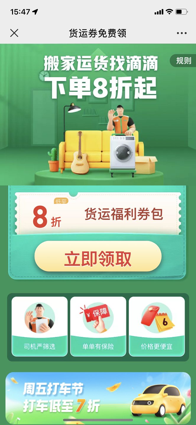 那么在哪个app便宜预约到滴滴搬家呢?大家只需微信关注公众号【线报惠打车券】获取搬家拉货优惠券即可省钱搬家!