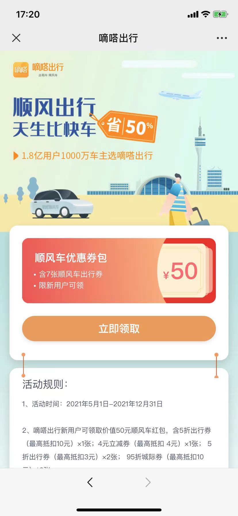 顺风车是嘀嗒出行里的主营业务,近年来,嘀嗒出行逐渐占领了整个顺风车市场六成以上的市场份额,成为顺风车行业的龙头老大。为什么嘀嗒出行如此受欢迎呢?因为相比于同类型的网约车,顺风车的价格更为实惠,而且滴答顺风车提供滴答是一站式服务,中途不需要换乘,使用起来非常便利。如果大家想要领取嘀嗒出行优惠券的话,小编可以给大家分享一个无门槛打车优惠券领取平台! 顺风车本身就是车主在顺路途中帮助乘客回家,乘客在乘车途中帮助车主承担部分油钱的一种互赢方式。面对近来的疫情风险防控,嘀嗒出行的安全措施也会根据疫情防控现状不断调整,对每位车主每天只能接四单这一硬性规则,杜绝了平台内的黑车往来,为乘客塑造了更好出行环境。而且,嘀嗒出行还推出了价值50元的优惠券包,里面含有7张顺风车出租车打车出行的优惠券,领取入口就在微信公众号【米米打车券】之中。 据悉,此次优惠券的活动时间是从今日开始一直延续到2022年的末尾,只要是嘀嗒出行的新用户,划重点,新用户。即可领取最高50元的嘀嗒顺风车优惠券。包括5折出行券(最高抵扣10元)×1张;4元立减券(最高抵扣 4元)×1张; 5折出行券(最高抵扣3元)×2张;最高抵扣10元的 95折折扣券*3张。需要注意的是,此活动顺风车红包仅顺风车业务开通城市可用,具体以“嘀嗒出行App-我的钱包-优惠券”中到账为准。 如果大家还想领取其它平台的打车优惠券的,也可以得关注微信公众号【米米打车券】。该平台已经滴滴打车,嘀嗒打车,花小猪打车,哈啰出行,曹操专车,T3出行,滴滴快车,享道出行,神州专车,首汽约车,阳光出行,万顺叫车,快狗打车等二十余家打车软件达成了战略合作,包含了大家出行需求的方方面面,需要经常打车出行的朋友可不要错过了! |