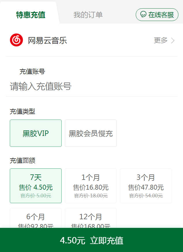 网易云音乐作为一款知名的在线音乐平台,受到了广大用户们的喜爱和追捧。它提供了丰富多样化的音乐资源。无论是流行歌曲、经典老歌、热门榜单还是地下音乐,你都能在这个平台上找到自己喜欢的音乐类型。与此同时,它还不断更新最新专辑和独家歌曲,让用户能够及时获取到最新的音乐资讯。那么,如何以更优惠的价格购买网易云音乐会员?下面就来一起看看吧! 1.购买长期会员:网易云音乐提供了不同时间段的会员服务,包括月度、季度和年度等。通常来说,长期计划相对于短期计划来说更加便宜。因此,如果你打算长期使用该平台并享受会员权益,可以考虑选择年度或季度会员。 2.关注折扣活动:其实,网易云音乐会定期开展一些促销活动,在特定时间段内给用户带来折扣价位或者额外福利。因此,在购买前可以留意一下是否有相关优惠活动,并在合适时机进行购入。 3.寻找优惠渠道:除了直接在官方平台上购买外,还可以通过第三方打折网站或线报发布等方式寻找到一些额外的优惠信息。其中小编最为推荐的就是微信关注公众号【视频会员优惠券】,该平台提供多种优惠券种类,可供大家随意选择,如网易云会员周卡仅需4.5元,原价18元的月卡仅需16.8元、原价54元的季卡需要47.8元、原价108元的半年卡为92.8元,原价216元的年卡为168元,活动多种多样,按需购买即可! 小伙伴们在充值的时候记得检查输入的账号是否正确哦,因为虚拟物品是无法退换货的。除了网易云音乐会员的优惠券之外,在该平台上还可获得优酷视频、腾讯视频、芒果TV、QQ音乐、喜马拉雅、酷我音乐、蜻蜓FM、PP视频、哔哩哔哩、视频影视音乐等多个视频音乐平台的低价充值活动。感兴趣的各位小伙伴,心动不如行动哦~ |