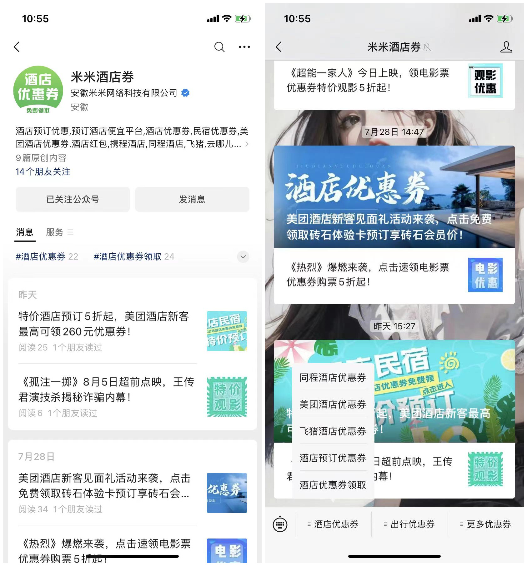现在,很多人在出游的时候都会选择预订民宿,而美团民宿提供了多样化、个性化的住宿选择。无论是豪华酒店、精品客栈还是独立公寓,美团民宿都能满足不同人群对于住宿需求的各种要求。这种灵活性和多样性使得用户能够根据自己的预算和偏好选择适合自己的住处,享受更加舒适和私密的入住体验。有朋友问,美团民宿优惠券怎么得?美团民宿5折券领取! 在价格方面,美团民宿通常比传统酒店更具竞争力。由于平台上有众多房源供应商参与竞争,因此可以通过对比不同房源价格来找到相对便宜且符合要求的住所。此外,美团也会不定期推出优惠活动和折扣券等福利,进一步降低用户在预订过程中支付费用。下面小编就来给大家分享一个每天都能提供酒店特价票的平台,那就是在微信关注公众号【米米酒店券】! 米米酒店券可以为用户免费发放酒店、宾馆,民宿等住宿优惠券,无需下载APP,无需缴费,用户只要微信关注【米米酒店券】公众号,或者微信扫描图片下方二维码即可进入平台内部,在该平台的首页就有美团酒店的标签,点击该选项,页面就会直接跳转至【领红包订酒店】的界面,此时,大家再使用手机号获取验证码登录就可以享受红包优惠了! 在米米酒店券平台上订酒店,大家可以享受到“满720减36,满500减25,满400减20,满300减15,满200减10”的酒店折扣优惠,而且在预订大部分酒店时都是可以使用的,具体还得以订单提交页为准。需要注意的是,预订酒店后大家需要去美团app上使用酒店抵用券,在H5网页版则无法使用。经常需要出行的小伙伴们,可千万不要错过这个平台了! |