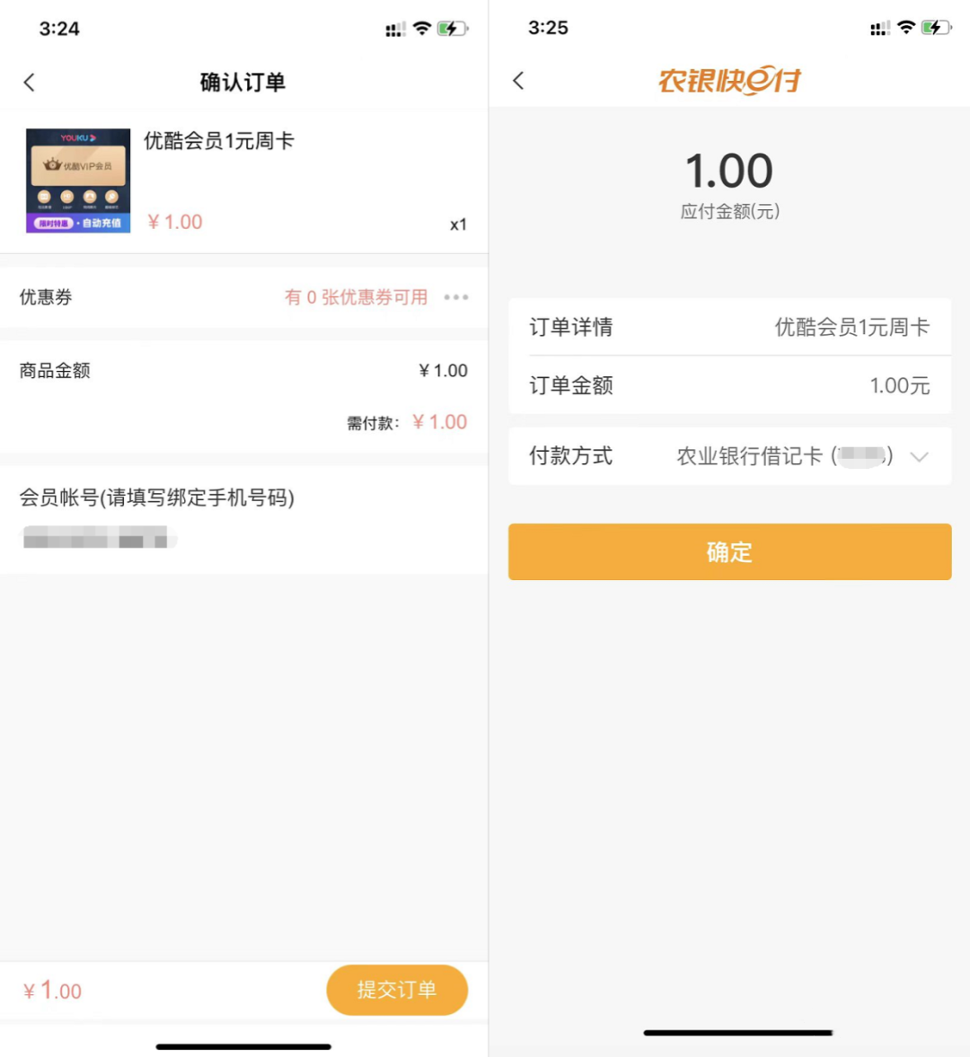优酷会员农行基本每个月都能1元开通7天周卡,每个月都可以参与一次,活动从去年至今已经快要持续一年了,之前给大家更新过免费领的优酷会员活动,不过很多都过期了:免费优酷会员VIP领59天超简单。农行这个1元买7天周卡的活动特别适合短期偶尔用一下优酷会员的人,亲测已经参与过很多次了。