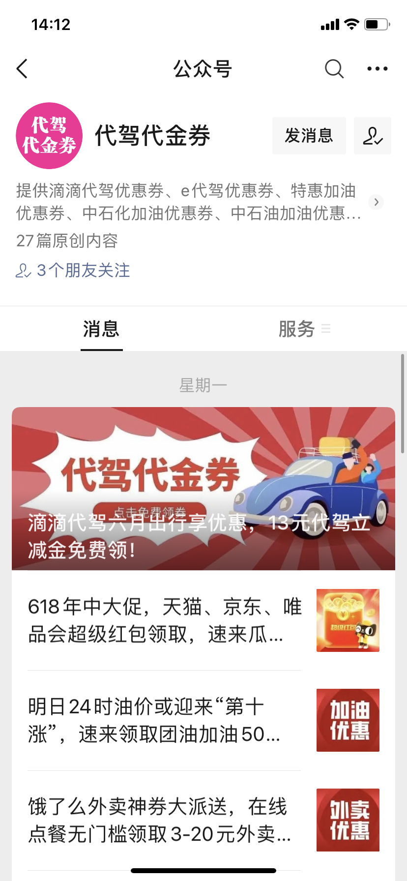 此次短片的营销还有优惠券的加持,如果大家想要省钱叫代驾的话,可以试着在微信搜索【代驾代金券】然后转到平台后点击菜单栏中的“代驾优惠券”,就可以实时获得价值114元的滴滴代驾优惠券! ... ...
