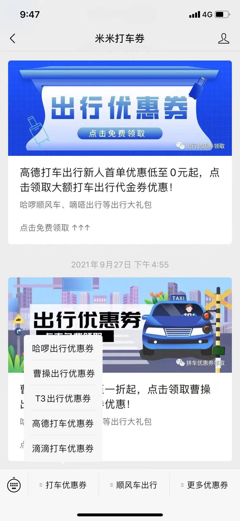 说到打车,可能大家对嘀嗒打车这个品牌都不会陌生,作为顺风车行业里的领头羊。目前嘀嗒出行用户数已经突破1.3亿,车主注册数突破1500万,就这样的数字来看,几乎中国1/10的人都在使用嘀嗒出行来打出租车和顺风车,总体还是比较安全靠谱的。小编给大家带来了嘀嗒出行优惠券的领取方式,让大家不仅安全回家还能省钱。 想要领取打车优惠券的朋友,可以关注一下微信公众号【米米打车券】,这是一家专门提供打车优惠券的平台。其中包括滴滴打车优惠券,嘀嗒优惠券,花小猪打车优惠券,哈啰出行优惠券,曹操专车,T3出行,滴滴快车,享道出行,神州专车,首汽约车,阳光出行,万顺叫车,快狗打车等二十余家打车软件,大家可以在这个平台上免费领取打车出行月卡、会员卡代金券和抵用券! 不管你是新用户还是老用户,都是有机会享受这次打车出行骑行福利的。其中滴滴出行新用户最多可抵15元,老用户最多可以领5次;哈啰顺风车可以首单立减15元;青柠骑行可以扫码免费领骑行礼包;高德打车免费领出行代金券等等,具体减免金额请以系统显示为准。 可能会有小伙伴担心,优惠幅度这么大的红包,肯定会有各种领取限制。其实这种担忧大可不必,因为米米打车券的红包是免费提供的,也没有点赞发朋友圈等要求,关注公众号就够了。 |