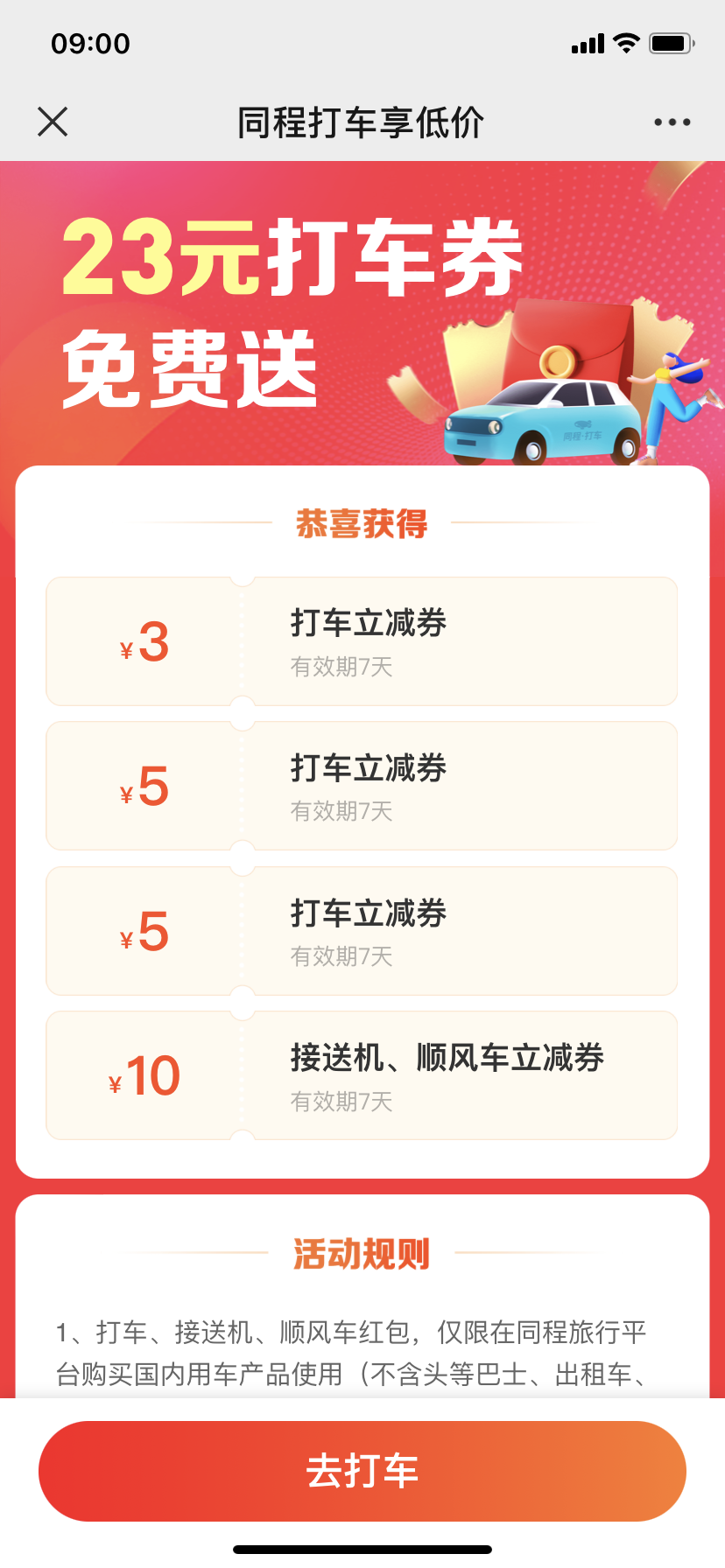 如果大家有出行需求的话,正好就可以参加此次同程打车带来的优惠活动,只需关注微信【米米打车券】即可获得价值23元的同程打车优惠券!