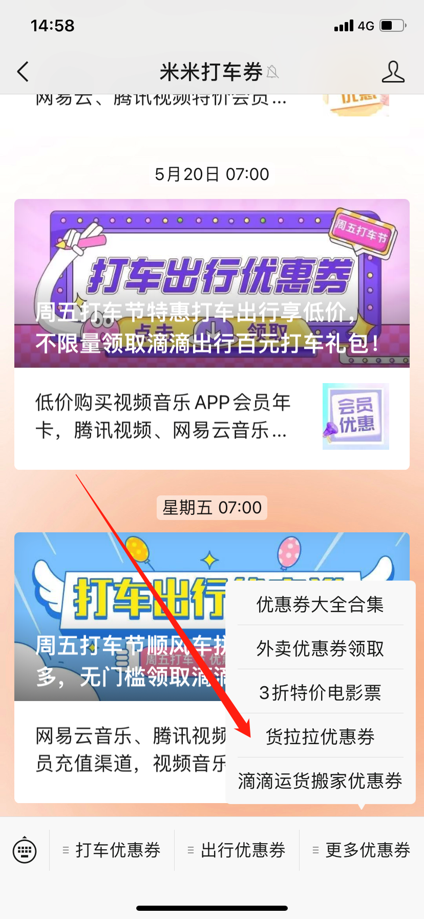除此之外,我们还可以关注微信【米米打车券】免费获得货拉拉搬家优惠券~