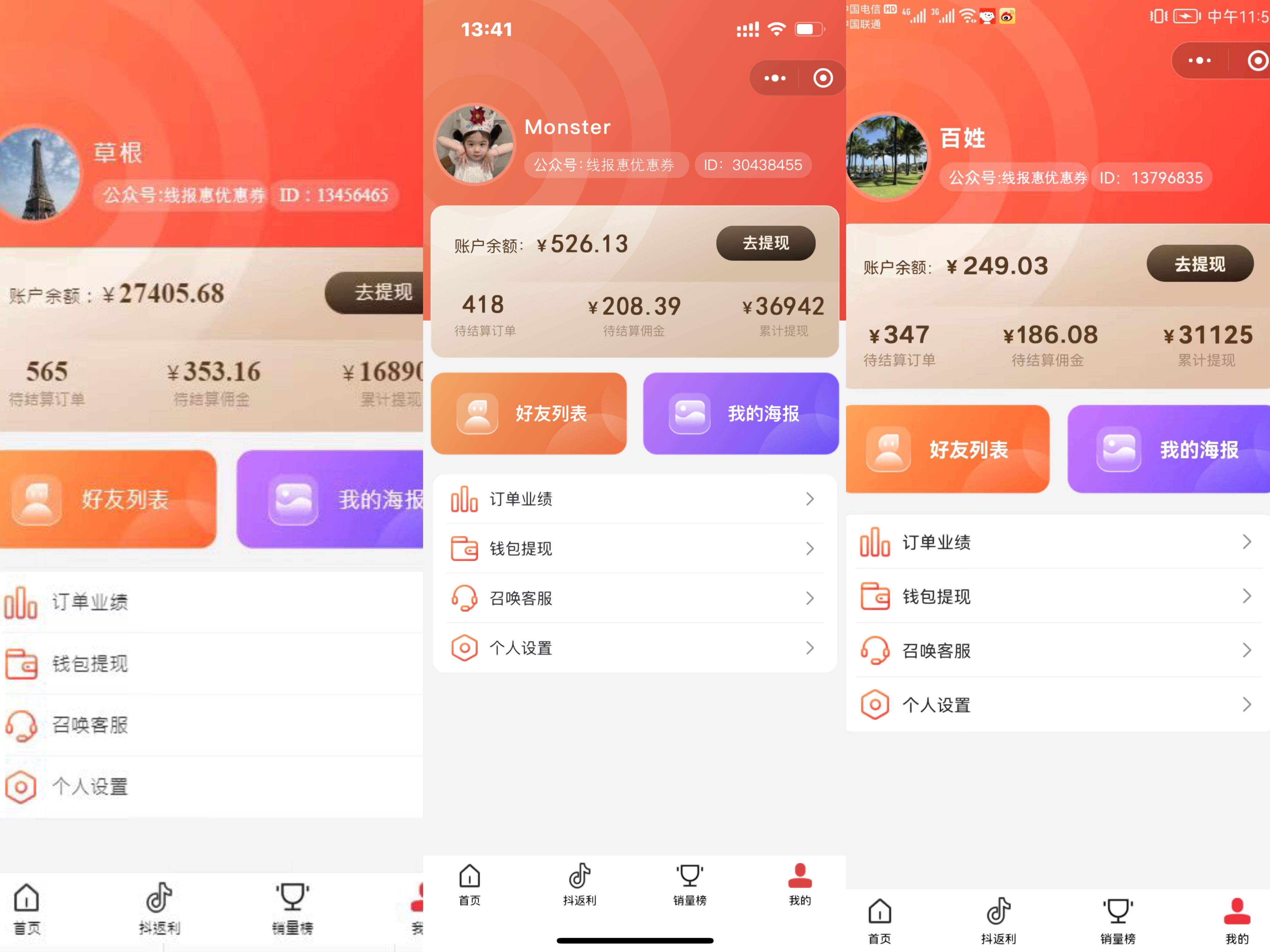 据悉,线报惠优惠券的分佣制度是这样的:注册即可成为该平台普通会员,享受自购佣金60%、下级用户佣金的10%的佣金奖励;如果直推了100个有效用户或是累积提现500元,还能成为平台总监额外增加团队佣金10%的佣金奖励;如果推广能力较强,能够直推20个总监(团队总数2000人)或是累积提现5000元,还能升级为合伙人参与年终分红。微信【线报惠优惠券】优惠多多,返利多多~平时经常购物或是需要零花钱的小伙伴都可以关注起来! |