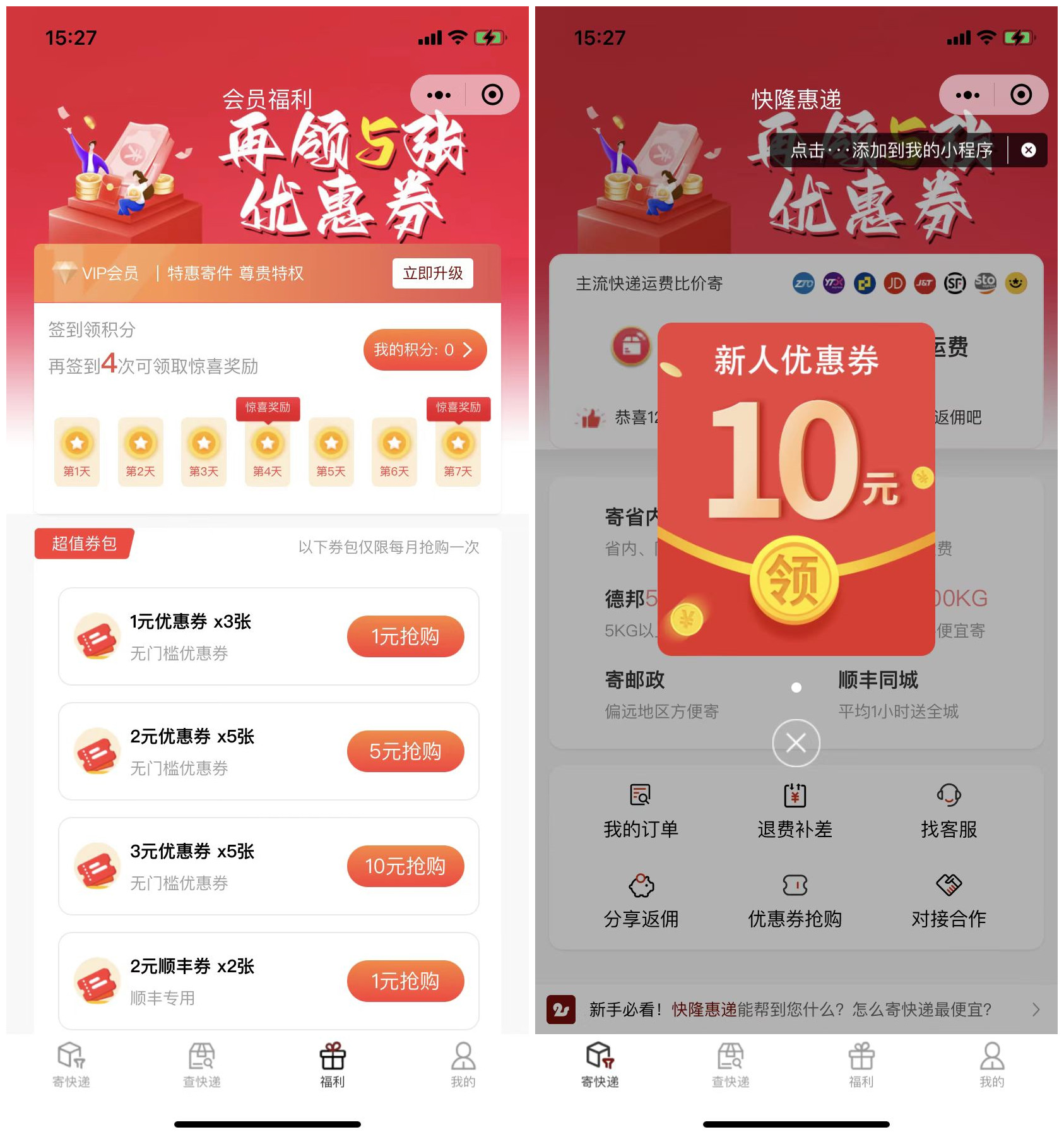 电商平台的快速发展,同样也加快了快递行业的发展,毕竟只要大家在网上进行购物,就离不开快递运输。对于广大的网友们来说,购物体验也是很重要的,毕竟若是购物时遇到了包裹变形、物品损坏等情况,心情就会受到影响,可能会导致减少网上购物的频率。所以,才有了顺丰快递的出现,和其他普通快递不同,顺丰快递特别在意物品的情况,基本都是轻拿轻放,物品很少会出现在运输途中受到损坏的情况,而且顺丰快递基本不会打烊,随时随地都在运输,哪怕是过年期间,所以,选择寄顺丰的商家也变得越来越多。 不过,也正是因为顺丰快递具有很多优点,他们的价格也比普通快递要贵一些,因为他们的成本也相对较高。现在快递运输的方式主要就是汽车运送,当然也有飞机运送等情况,而快递公司一般是根据物品的价格,以及用户的选择来调整运送方法。虽说车辆运送的成本低,但速度也是比较慢的,如果想要快速到手,那肯定是选择飞机运送比较好了,而顺丰就有提供这种服务。但对于普通用户来说,一般不会选择顺丰寄快递,因为价格实在太昂贵。不过,大家不知道的是,顺丰快递寄件时是有优惠券可以领取的,大家只要关注微信-线报惠寄件优惠券即可领取到相应的优惠券,在下单时就能享受立减优惠。 顺丰快递在新年期间还发放了大礼包优惠,其中包括了最高减50元的寄大件物品的专享优惠券,还有满200-20的寄心理专用券等,大家可以根据自己的实际需求来进行领取使用。虽说顺丰原价寄件很贵,但关注该平台领券后再下单,就会便宜很多,十分的划算。而且这些优惠券都是免费领取的,不需要大家缴纳任何费用,这就减少了大家的寄件成本。 此外,还有各种新人福利,只要是关注该平台的新人用户,都可以领取到10元的新人优惠券,可以领取1张2元的通用券;2张2元的顺丰专用券;2张2元的德邦寄件红包,所以,有寄件需求的用户一定要关注这个平台,领取相应的优惠券。不仅仅是顺丰,还有货拉拉、中通、圆通等市面上常见的快递平台,大家在线报惠寄件优惠券平台都可以领取到相关优惠券哦! |