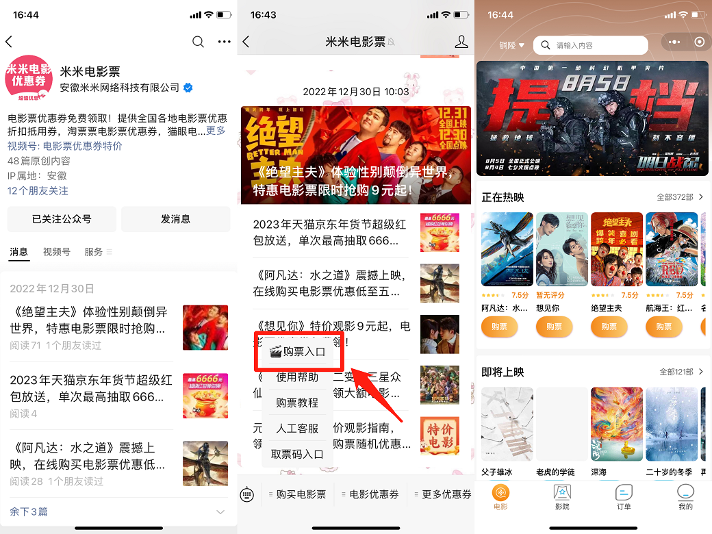 那么哪里可以买到特价电影票,现在就给大家分享一个攻略,那就是关注微信公众号-米米电影票,在里面可以享受到优惠,帮助我们省钱哟!