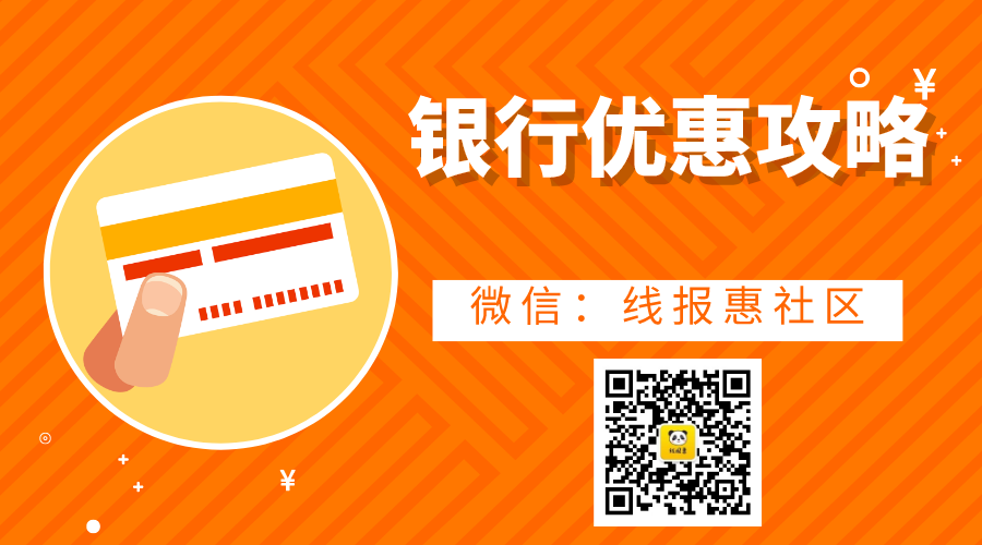 更多银行优惠资讯活动欢迎关注微信公众号【线报惠社区】,该平台是一家专注薅羊毛活动,优惠省钱线报资讯分享平台。可以为广大用户提供一个专业羊毛客线报优惠交流平台,里面不仅有银行优惠活动,还有各种餐饮美食优惠券、外卖优惠券、打车优惠券、加油优惠券、快递优惠券、酒店优惠券、电影特价票等等,喜欢薅羊毛的小伙伴们一定不能错过这个平台! |