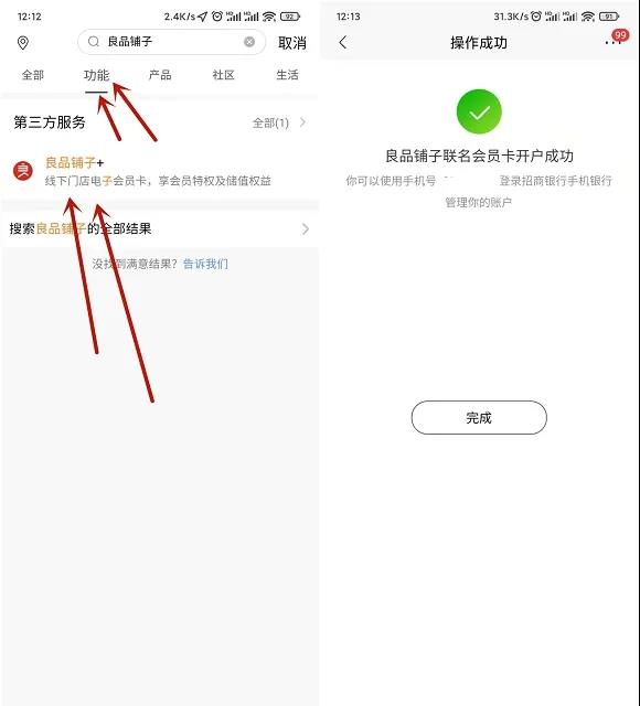 然后首页搜索【良品铺子】 点击功能进去 根据提示开通联名会员卡