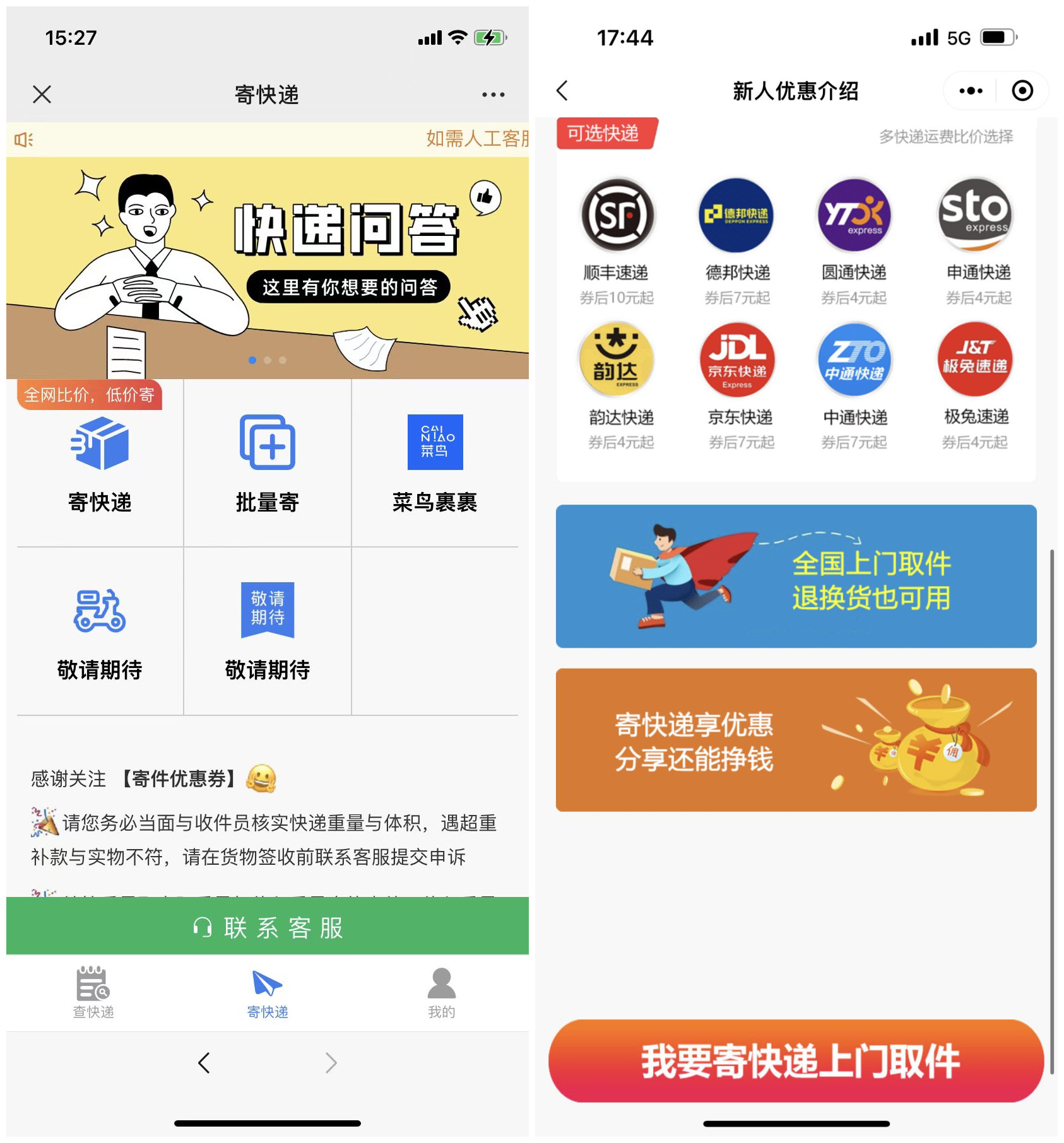 随着现在大家越来越多的接触到了网购行业,身边的家人朋友们经常也都会频繁的使用物流平台,而且对于很多小伙伴们来说,每天最开心的事情就是去快递站取快递,每次拆快递的时候都有一种拆盲盒的惊喜,因为在网购平台上购买到东西的质量都是未知的,如果买的质量物超所值的东西大家就会比较的开心,但是同样的大家在网购平台上购买商品的时候也会遇到实物与图片不相符的情况。 那么如果大家遇到这种情况,就需要给商家进行退换货处理。现在对于各位小伙伴们比较方便的就是目前的物流平台发展越来越迅速,大家在网购方面进行退换货也会比较的方便,几乎人人都可以进行操作。就连腿脚不便的老人也可以要求快递员上门取件进行退换货。而且同样的大家除了给商家退换货之外,大家自己也可以作为商家给别人发快递,在这样的情况下各位朋友们更是需要频繁的使用到物流平台了,所以现在大家经常用到的所有物流平台都可以在各个方面满足大家寄快递的需求。 而且现在大家除了对于快递公司有运输速度以及消费者权益方面的要求之外,大家肯定都想要以最低的价格进行寄快递,那么大家平时都有什么便宜寄快递小技巧呢?各位想要获取特惠寄快递方式的朋友们就可以前来关注一下公众号微信-线报惠寄件优惠券平台,大家成功关注这个平台之后,不管是选择顺丰速运,中通快递,圆通快递,申通快递,京东快递,邮政快递,韵达快递还是其他多种快递品牌,都可以通过这个平台以最低的价格进行寄快递。 这个平台会为成功关注到的每一个人免费发放寄快递的优惠券, 大家通过这个平台 光是在寄快递方面就可以省下很多钱,通过这个平台寄快递要比大家直接去快递站寄快递便宜非常多,所以这个平台对于平时经常有寄快递需要的各位小伙伴们来说是非常有必要的一个优惠平台,那么感兴趣各位朋友们就快来关注这个平台吧! |