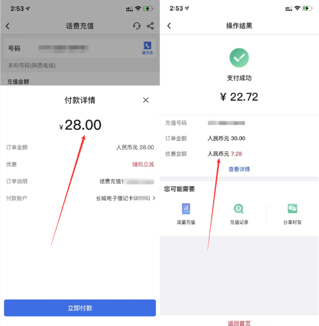 【活动内容】: 1、打开中行APP找到“热门活动”,先签到抽取2-10元话费券,一般每个月的首次签到必中2元以上话费券的; 2、签到之后可以抽中话费券 3、最后返回首页 话费充值模块充值30元的面额,最少立减7元以上。 【活动入口】:中国银行app ...