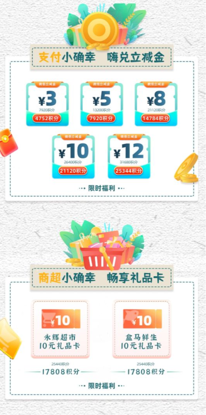 【活动内容】:借记卡积分商城现推出小额福利兑,积分好物快快兑起来。小积分也能拥有暖暖的幸福。温馨提示:借记卡积分由产生当年生效,第三年4月30日24点清零。幸福无处不在,只是需要我们用心去感悟,活动入口评论区分享一件生活中的小确幸和大家一起品味这份美好~截 ...