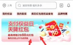 浦发银行支付权益日抽抽最高88元支付宝红包,速度冲~