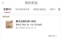 小编提示:打开中国工商银行APP搜索【任务中心】进去,下拉页面点【春日出游礼】进去,完成4个浏览任务可以抽奖5次,刚中2个1.99元微信立减金,非必中。