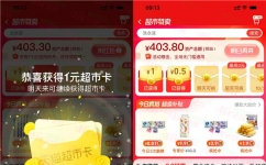 参加淘宝举办的每天打卡抽猫超卡活动,通过打开淘宝APP进去活动里,每天可以点击【领红包】按钮打卡抽奖1次,有机会中到随机金额的天猫超市卡,累积得到的天猫超市卡可以在淘宝购买天猫超市商品无门槛叠加抵扣使用,另外淘宝双11超级红包的活动也有概率中到1元天猫超市卡。