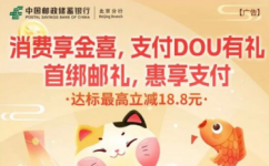 活动期间,用户在抖音(含抖音火山版、抖音极速版、抖音盒子)客户端内通过合众易宝渠道首次成功绑定邮储银行北京分行借记卡,在电商购物、抖币充值、本地生活场景选择抖音支付并使用邮储银行北京分行借记卡完成绑卡后的首次支付,有机会享支付立减6.6元权益,同一用户限一次。
