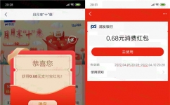 【活动内容】:参加浦发银行举办的月月享十惠抽最高288元支付宝红包活动,通过打开浦发银行APP进去活动里,只要完成指定的金额要求(也就是用浦发银行卡包括二类卡在支付宝、或者微信支付金额累积达到指定数额就算完成),每个账号每个月最多可以抽奖10次,每次都有机会中到一个随机金额的支付宝红包,红包金额最高288元,小编测试中0.88元+0.68元支付宝红包秒到支付宝卡包里。