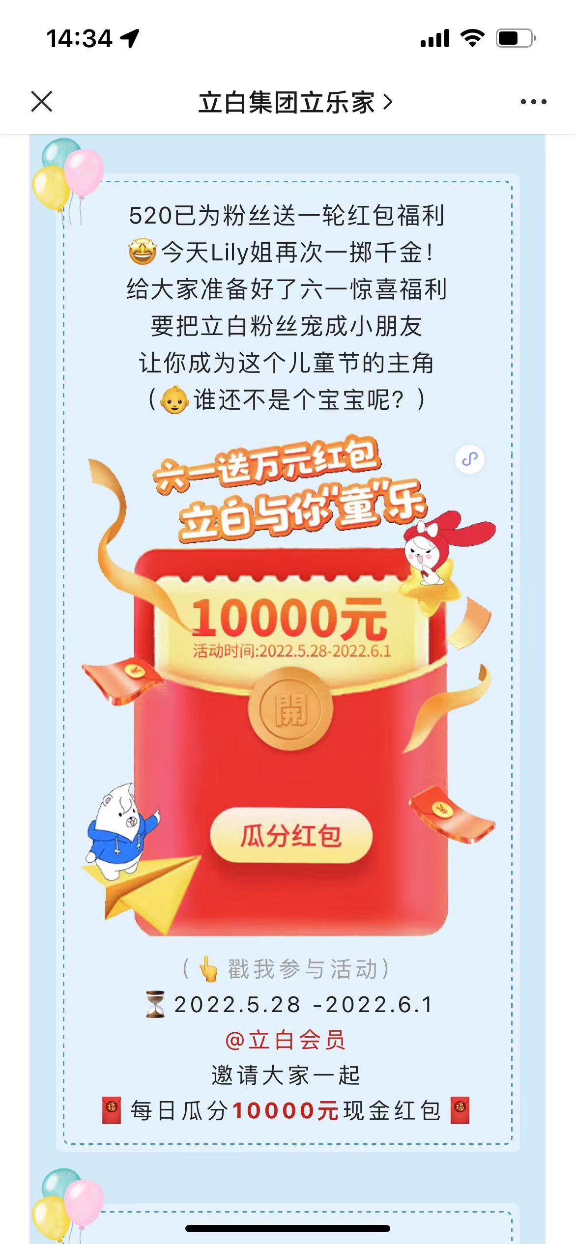 立白集团立乐家61宠粉每天瓜分1万元微信红包