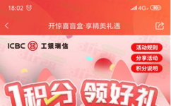 参加工银瑞信基金举办的1积分领好礼活动,通过打开工银瑞信基金APP进去活动里(需要在6月11日前完成了实名认证的老用户参加),消耗1个积分开盲盒可进行抽奖1次,每个账号最多只能抽1次,有机会中到随机金额不等的微信红包、或者实物,中到红包需要到微信里领取才会推送,小编测试中8.8元红包,非必中。