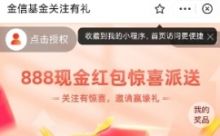 【活动内容】:参加金信基金举办的支付宝关注有礼抽最高888元现金红包活动,通过打开支付宝APP扫码进去活动里,在活动里关注财富号可以直接抽奖1次,有机会中到最高888元支付宝消费红包,之后也可以分享小号助力额外增加抽奖机会,中到的红包秒到支付宝卡包里,可以支付宝付款的时候无门槛抵扣使用。