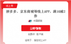 【活动内容】: 活动期间,手机GPS定位于浙江(除宁波外)的云闪付用户,登录“云闪付APP”,进入“浙里好券-整点秒杀”板块或杭州公交地铁乘车码完成页,有机会领取满10元立减2元优惠券。每日名额有限,先到先得,领完即止。单用户每日限领取、使用1张优惠券,每次限使用1张优惠券。单用户整个活动期间共计可领取、使用20张优惠券。用户参加活动前,需将云闪付APP升级到最新版本并打开手机定位功能,同时允许云闪付获取位置信息,本活动仅限GPS定位在浙江省(除宁波)的用户领取及核销。 活动范围:拼多多、京东商城、美团、网易严选、考拉海购、网上农博、唯品会、蘑菇街、苏宁易购、中国联通、12306、携程、网上国网、微医、俺来也、京东到家、叮咚买菜、永辉生活、鲜丰水果、金逸电影、瑞幸咖啡、来伊份、手机百度、肯德基等。(以商户收银台实际展示为准)