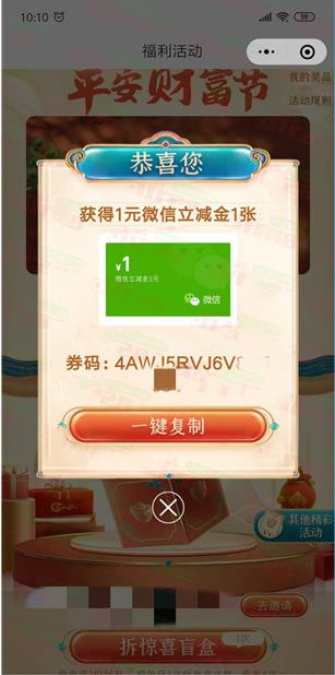 平安人寿拆盲盒抽0.3-200元微信红包、微信立减金