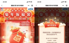 【活动内容】:参加建融家园举办的兔年拆福袋抽至高500元微信立减金活动,通过打开微信进去小程序活动里,完成页面指定的任务可以获得抽奖次数,每天都可以去抽,有机会中到1-500元微信立减金,小编测试中到1元立减金,中到的微信立减金可以手动选择领取储蓄卡还是信用卡,非必中。