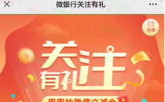 1、微信关注公众号【农行福建分行微银行】点菜单栏【微社区】进去点滚动图【关注有礼】进去活动里; 2、每个微信每周都可以抽1次,多号多撸,中到的微信立减金需要福建农行卡才可以抵扣(也可以在中国农业银行APP注册一张福建地区的二类卡抵扣)。