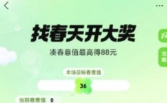 【活动内容】:参加支付宝举办的找春天开大奖凑春意值最高得88元活动,通过打开支付宝APP搜索【找春天】进去活动里,每天完成页面指定的浏览任务可以得到找春天次数,精准凑得当前场次目标春意值的用户可随机得到5.2元、1.68元支付宝红包,4月12日加码还可以中最高88元红包,需要你得到的春意卡上的春意值总数与当前场次展示的目标春意值相同则可以得奖,每天晚上20点开奖,每天都可以参加。