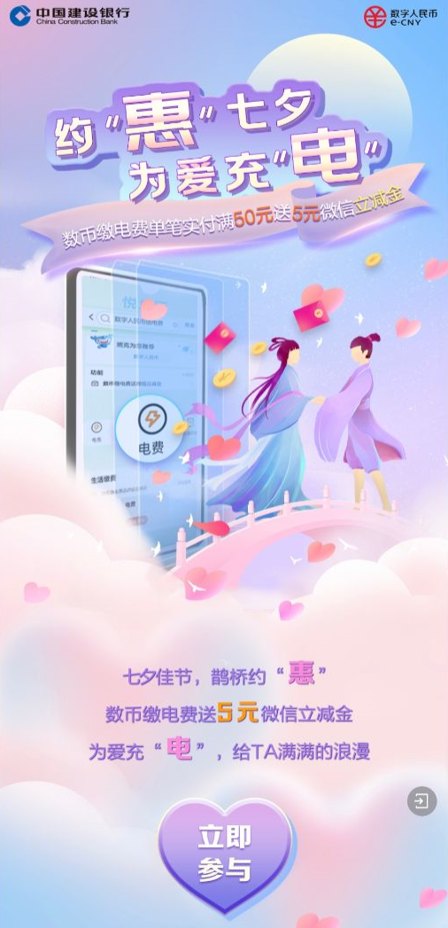 为爱充“电”,中国建设银行数币缴电费有礼~