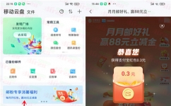 【活动内容】: 参加139邮箱举办的月月邮好礼赢88元立减金活动,通过下载打开139邮箱APP,手机号码登录进去活动里,每个月都可以抽奖1次,有机会中到1-2元微信立减金、0.1-0.5元支付宝红包,中到的微信立减金和支付宝红包直接到账你手机号码对应的账号上。 小编提示:三网号码都可以去,打开139邮箱APP,点底部【云盘】再点中间滚动图【邮粉专享消暑福利】进去,每个月都可以抽奖1次,中到的微信立减金和支付宝红包直接到账你手机号码对应的账号上,非必中