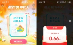 【活动内容】: 参加快手举办的遇见101种秋天发视频挑战抽666元红包活动,通过打开快手APP搜索【遇见101种秋天】点击顶部横幅进去活动里,进去随便发布一个几秒的视频后就可以抽奖1次(发布的视频需要公开,不能私密,视频可以在抽奖之后隐藏),小编测试中到0.66元红包,中到的红包可以提现到微信或者支付宝秒到。 小编提示:打开快手APP搜索【遇见101种秋天】点击顶部横幅进去活动里,进去随便发布一个几秒的视频后就可以抽奖1次(发布的视频需要公开,不能私密,视频可以在抽奖之后隐藏),小编测试中到0.66元红包,中到的红包可以提现到微信或者支付宝秒到