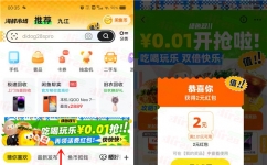 小编提示:打开闲鱼APP首页点【吃喝玩乐0.01元抢】进去可以直接领到2元闲鱼红包,分享2个好友助力还可以再领4元闲鱼红包,得到的闲鱼红包可以在闲鱼购买商品抵扣,理论上也可以套,数量限量