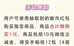 数币红包仅支持购买指定商品时使用。每期活动限1万个数字人民币红包,每日数量有限,先到先得。