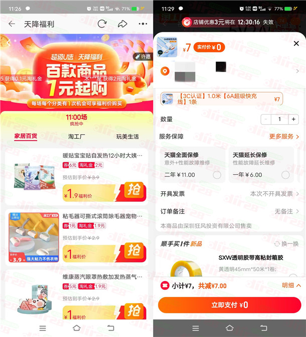 小编提示:每个分类每天都可以撸1次,打开淘宝APP扫码、或者复制淘口令打开淘宝APP进去,每天11点都会补充新的商品和库存,每天都可以1元撸各种实物商品,用红包抵扣可以最低0元撸实物