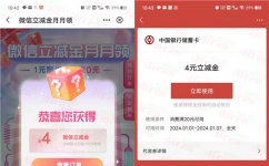 参加中国银行举办的微信立减金月月领拆盲盒活动,通过打开中国银行APP搜索【微信立减金】进去月月月领活动里,只要支付1元就可以拆盲盒抽奖1次,必中3-20元微信立减金,小编测试中到4元秒到,中到的微信立减金全国中国银行卡都可以抵扣,也可以变现,每天数量限量24万份,如果当天没数量了可以第二天再去。